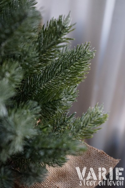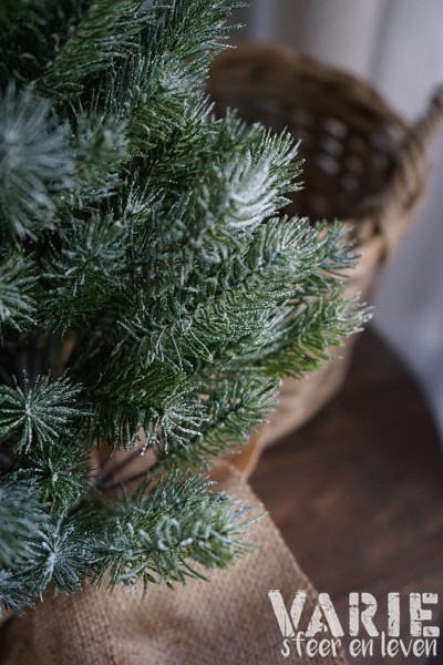 Deze sfeervolle kunstkerstboom van Countryfield brengt meteen warmte in huis. De takjes zijn licht besneeuwd en hebben een subtiel glimmertje, waardoor de boom nét dat sprankeltje extra krijgt. De pot is omwikkeld met jute, wat hem een gezellige, landelijke uitstraling geeft.