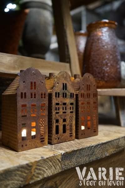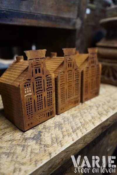 Trapgevel, doorsnede 7 cm breed, 11 cm hoog. Rondegevel, doorsnede 6 cm breed, 13 cm hoog. Lijstgevel, doorsnede 7 cm, 13 cm hoog. €7,95 per stuk.