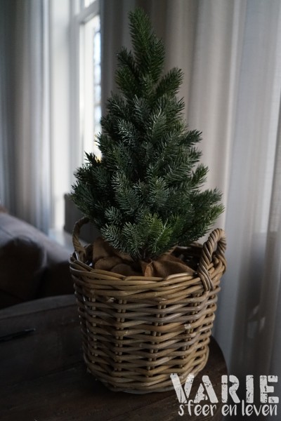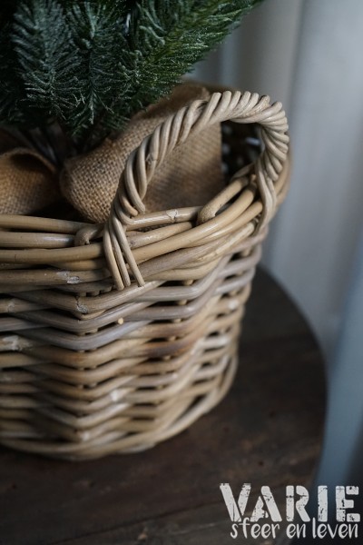 Een gezellige, natuurlijke mand die overal wel een plekje vindt. Nu perfect met een kunstkerstboompje en straks in het voorjaar leuk met vrolijke viooltjes of andere plantjes.