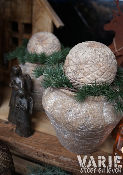 De pot “Bassie” heeft een stoere, robuuste uitstraling met een verweerde, vergrijsde kleur die moeiteloos past in elk interieur of buitenruimte.
