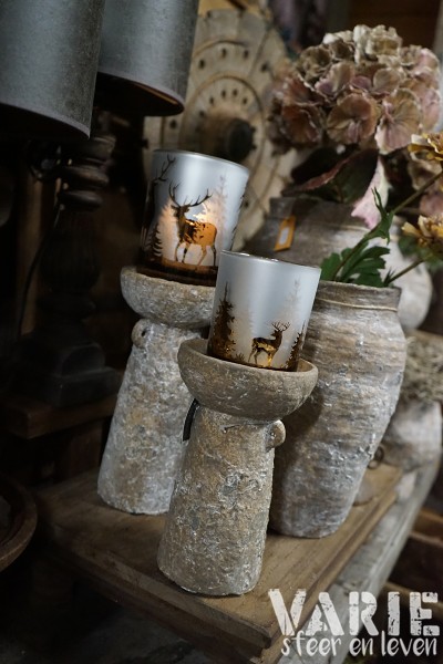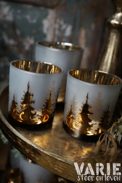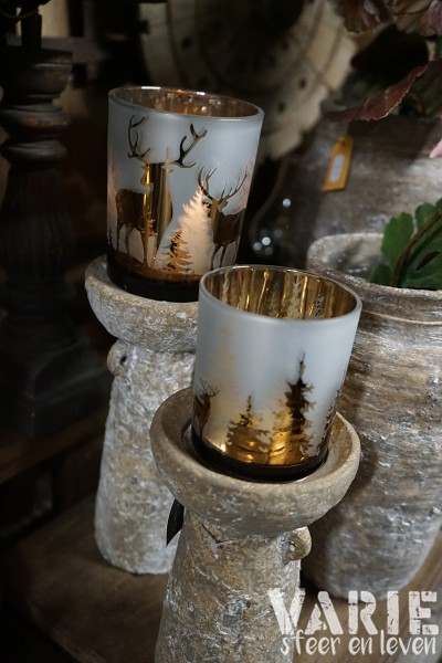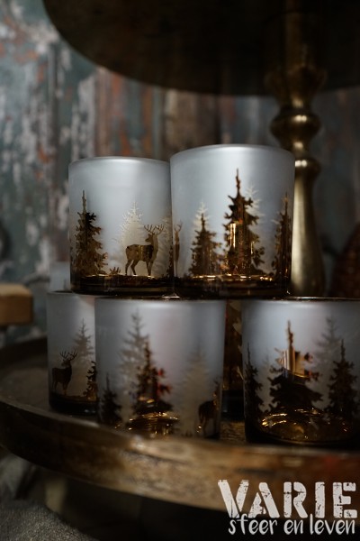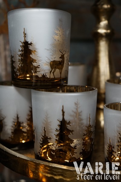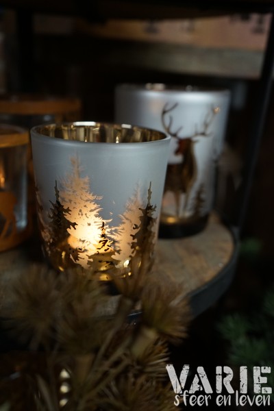 Windlichten met dennenbomen en hertjes – verkrijgbaar in 3 maten